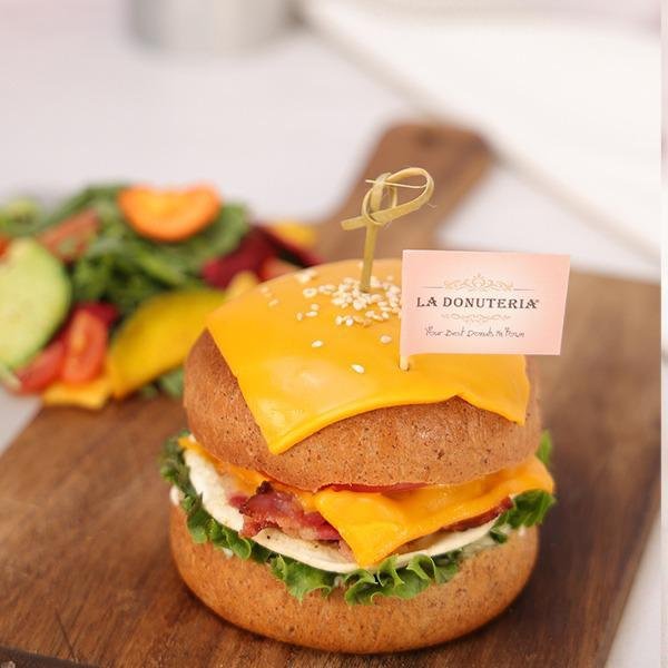 Keto Friendly, Beef bacon and Egg, Creamy Cheese, American Cheese on our freshly baked Keto Bread