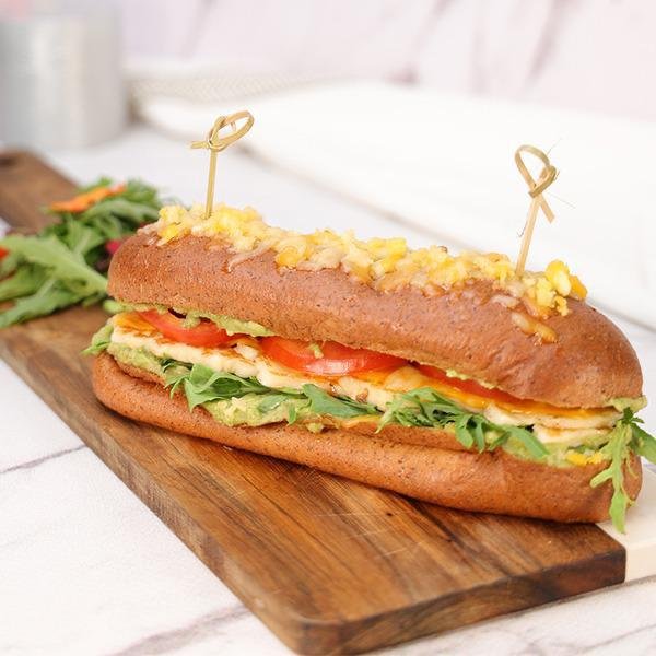 Halloumi Cheese with fresh smashed avocado with vegetables served with Green Salad