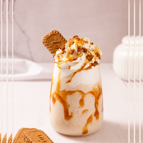 A unique shake featuring Lotus Biscoff cookies or spread, vanilla ice cream, and milk, resulting in a sweet and spiced