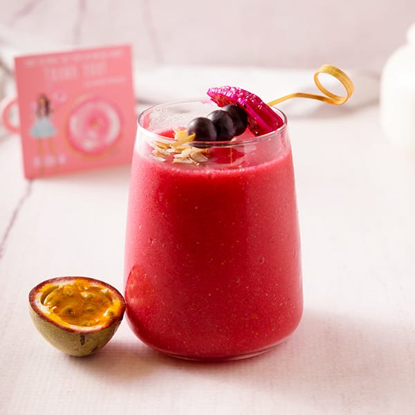 A tropical and visually striking smoothie featuring dragon fruit usually the white variety, combined with other fruits