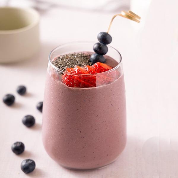 A tart and sweet smoothie created with raspberries, often blended with fruit juice, delivering a delightful raspberry flavor